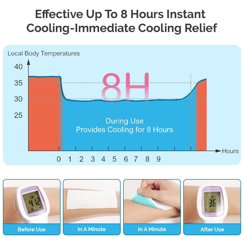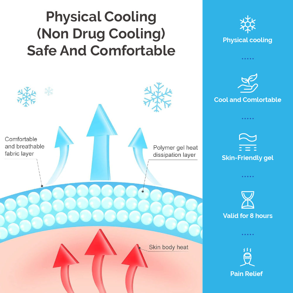 The advanced hydrogel technology activates on contact with skin, creating a gentle cooling sensation that: